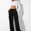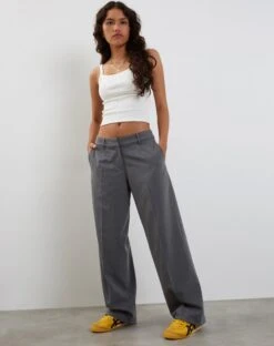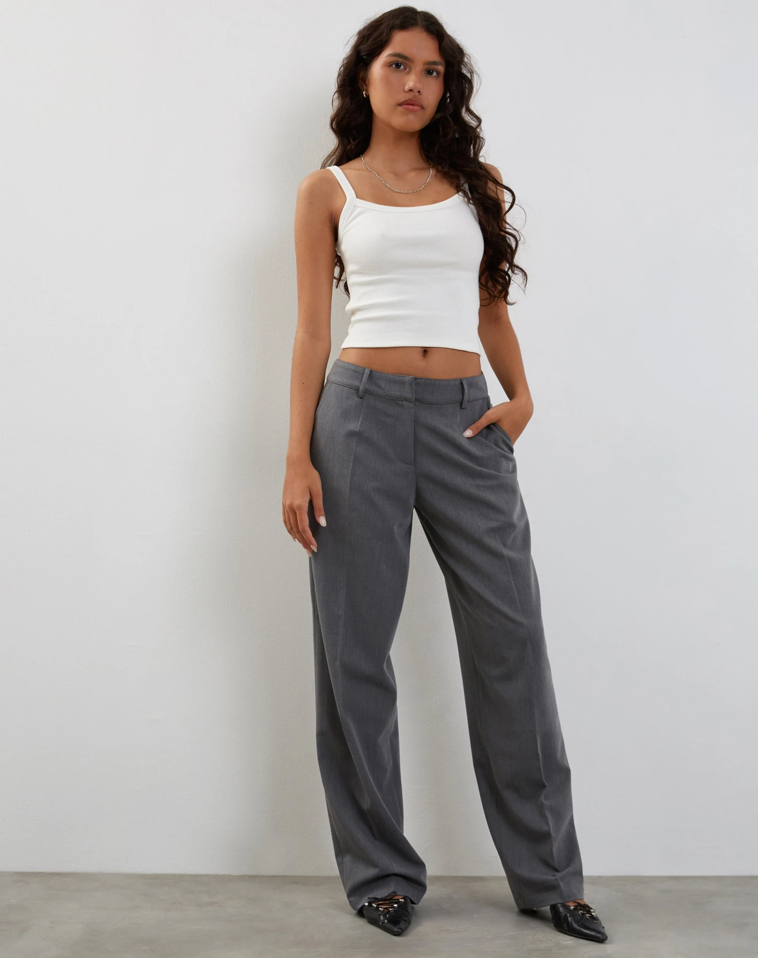 Give your tailoring a refresh with our Sirka trouser. In charcoal featuring wide leg design featuring an extended waistband, concealed zipper, beltloops and front pockets with low rise fit. Simply style with our Aus vest.Â