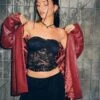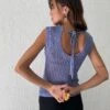 Add some colour to your basics. In a blue jersey fabric, our Solay top features a cropped fit with a square neckline and thin, cami straps. Detailed with a delicate ribbon embroidery. Get the look with our Maxce skirt.Â