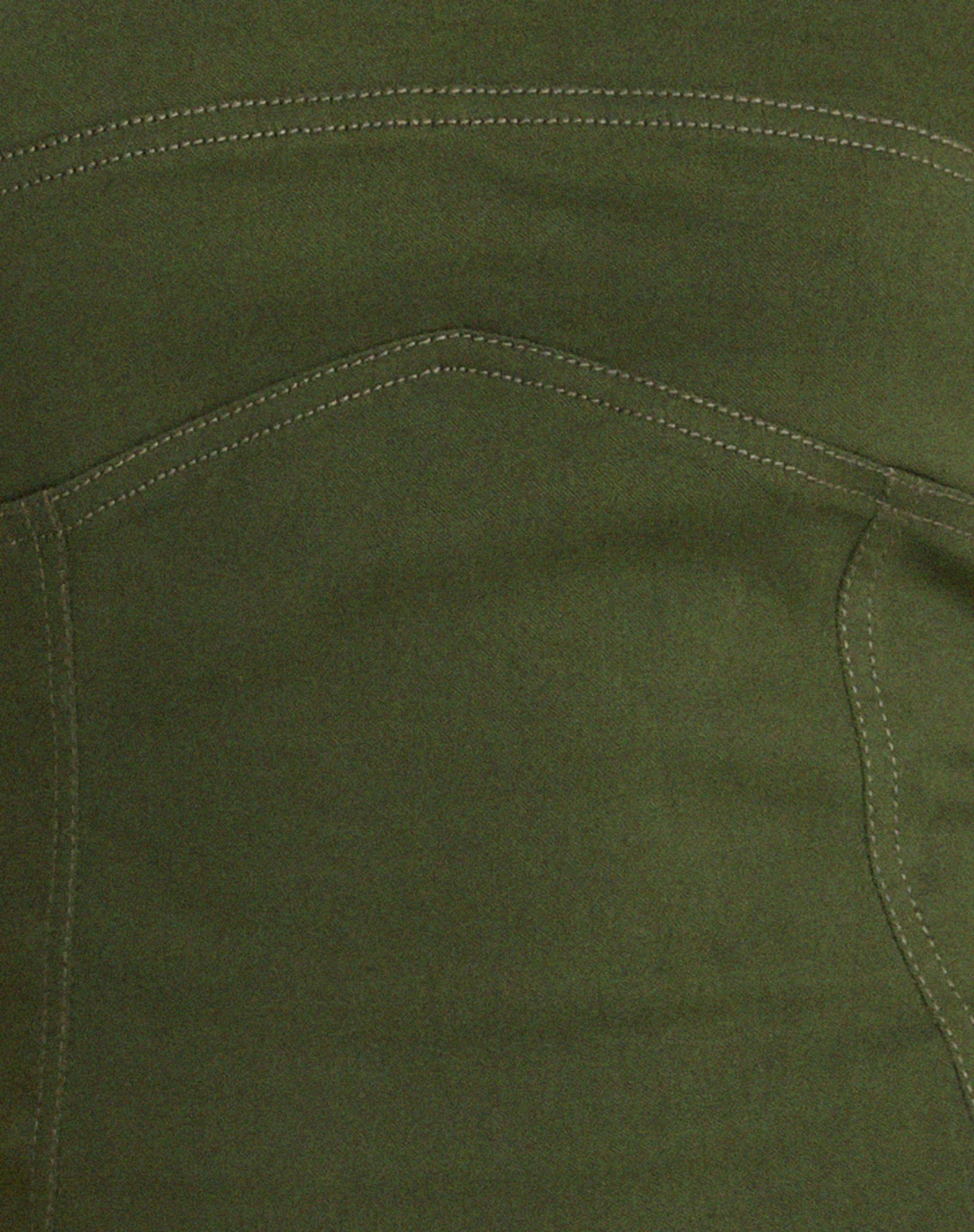 Bodycon mini length dress in tailoring chive with a strapless curved neckline and invisible zipper centre back.