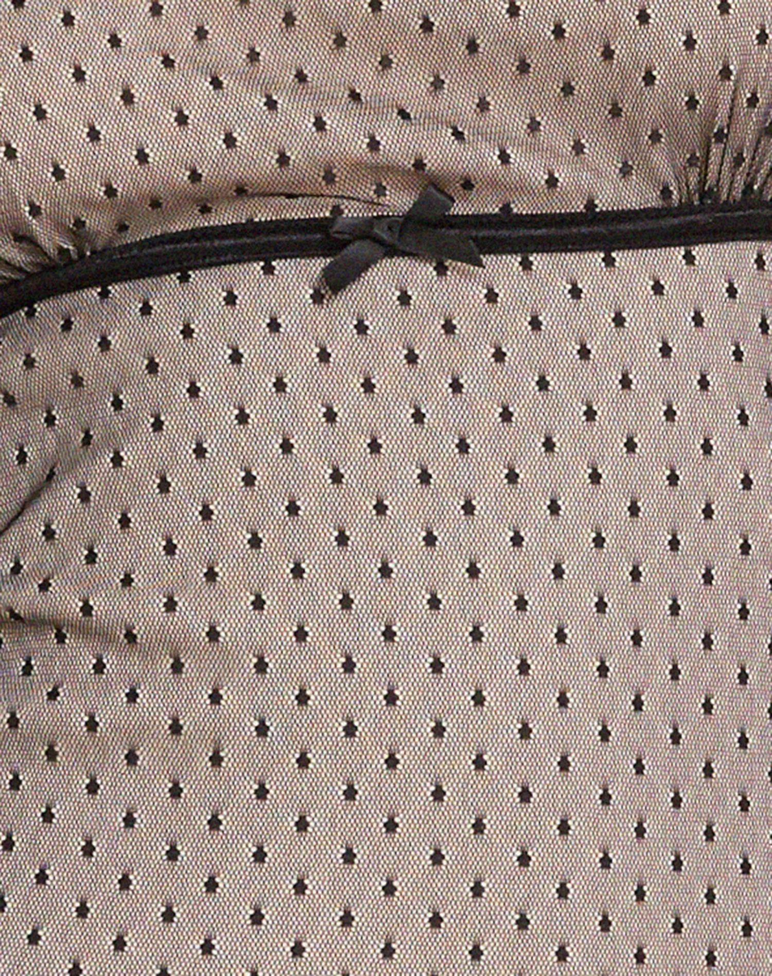 Bodycon dress with thin straps and a ribbon and bow detailing under bust, in a black mesh overlay and mini fit.