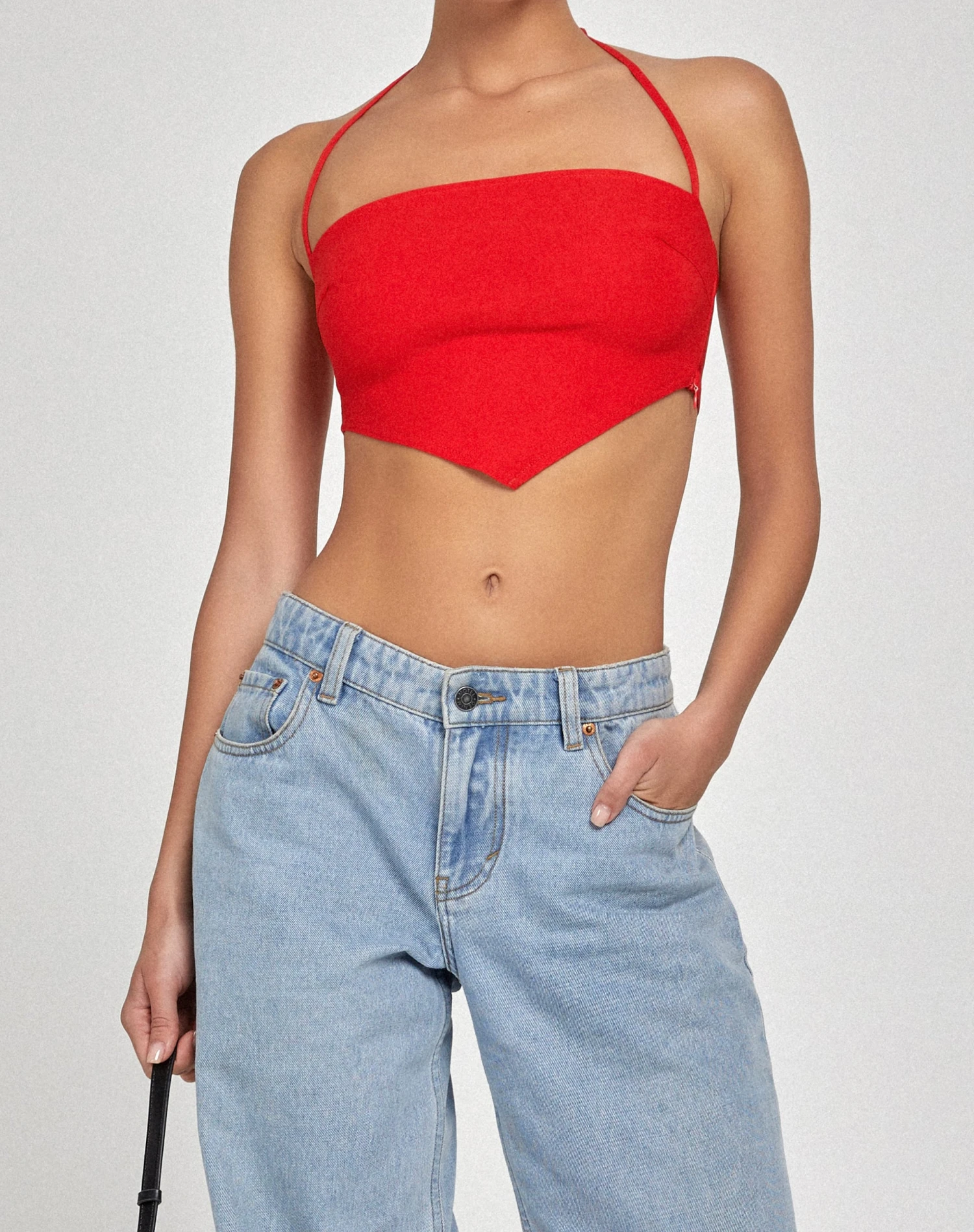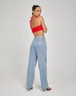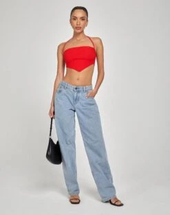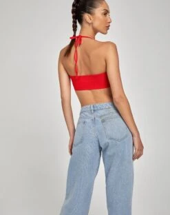 A top that can be worn with ease for any occasion. The Taina top features a square neckline, thin straps and a scarf hemline in a red fabric. We’ve styled ours with the Pelma skirt.
