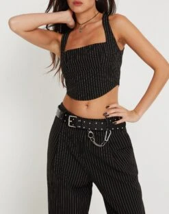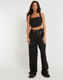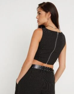 Stay chic with the Targun top. Featuring a cropped fit with square neckline and thick straps in a pinstripe black. Match it up with the Saskira trousers.