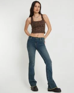 Leopard print vest top, featuring cropped fit and thick straps in brown. For this seasons look pair with our blue acid frayed low rise jeans, every wardrobes essential.