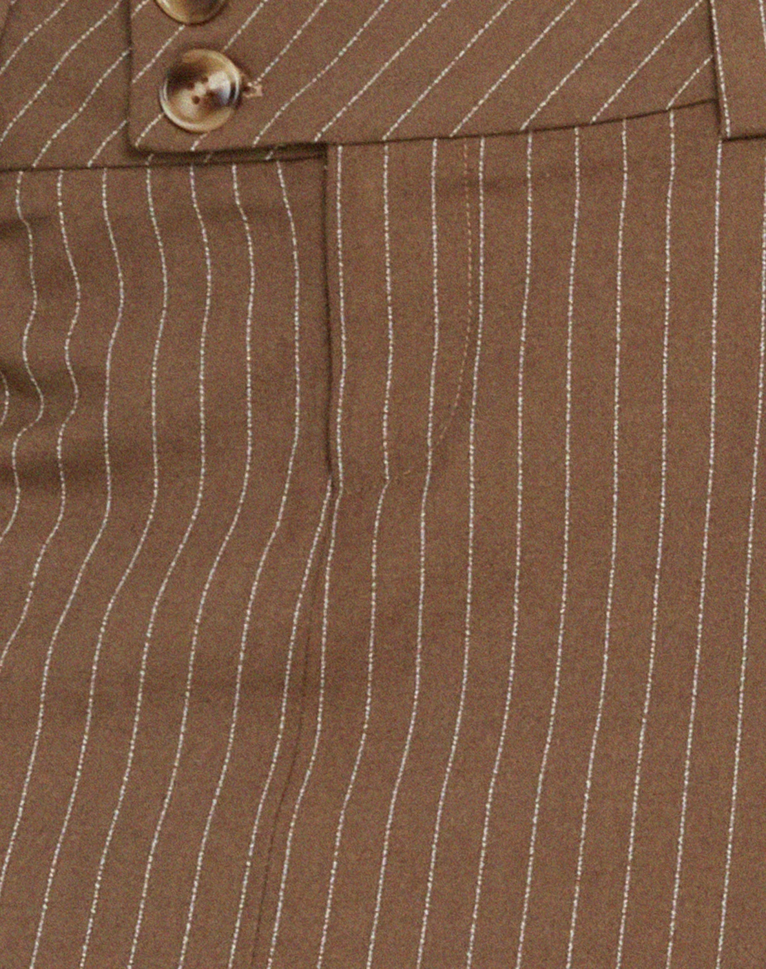 The Tovani skirt will elevate your look. In pinstripe brown, it features a mini, bodycon fit with belt loops, buttons and a zip fastening. Complete the ‘fit with our matching Maiwa blazer.Â