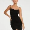 Slinky midi dress in silver shimmer, featuring a V neckline and thin straps. This silver dress is perfect for party season.