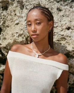 Not your average knit dress. The Vivian features a mini fit, a bardot neckline and comes in an ivory, knitted material.