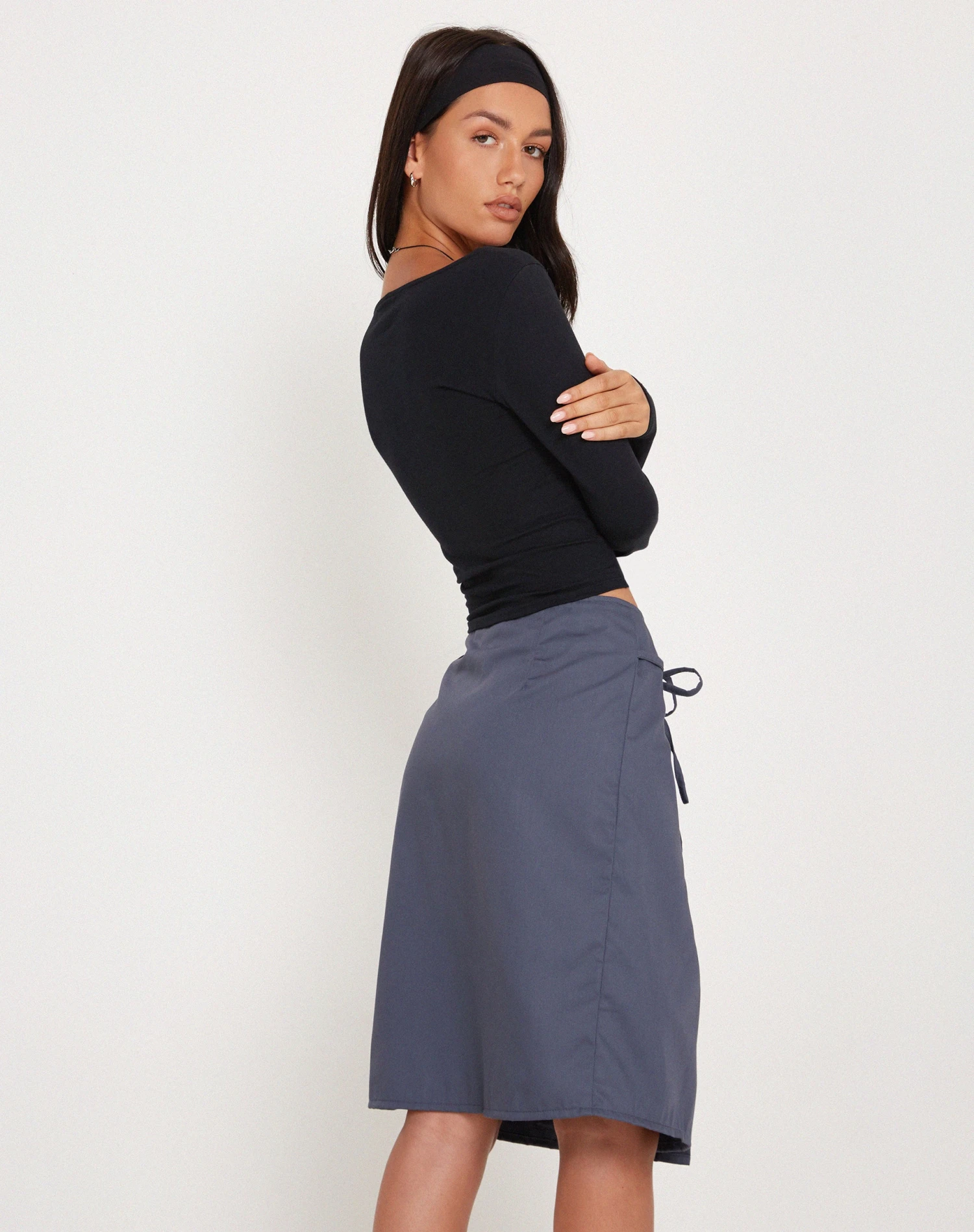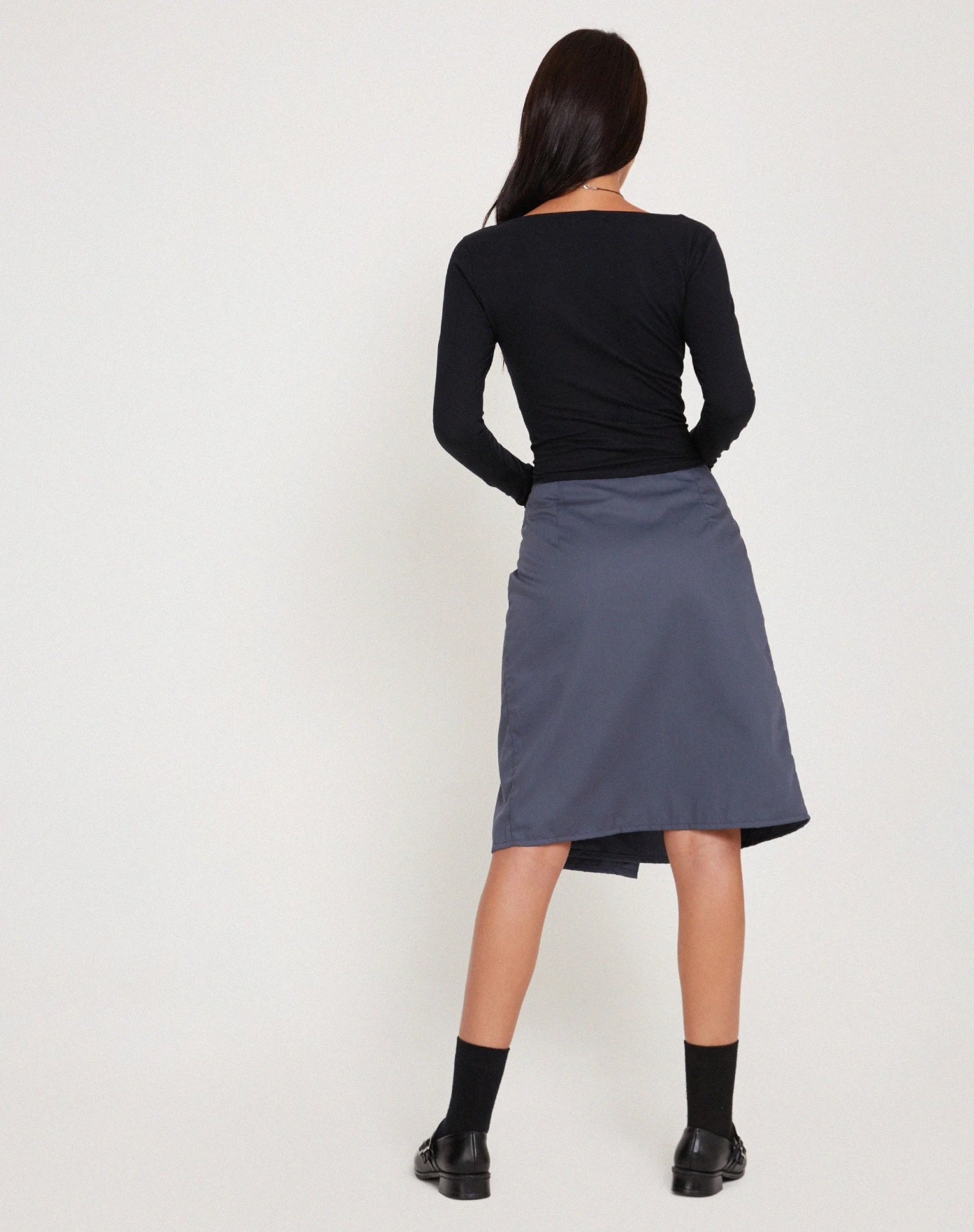 Made in a charcoal navy cotton drill fabric, our Yarbie wrap detail midi skirt is the ultimate easy wear outfitting piece. Featuring an A-line fit and tie fastening. Style with our Bonlo Top.
