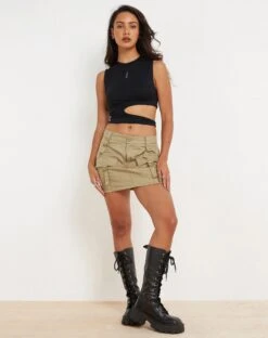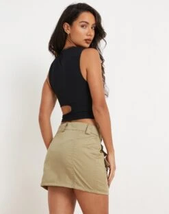 Black cut out racer neck crop top, in a jersey material. Wear with our Ai Cargo Mini.